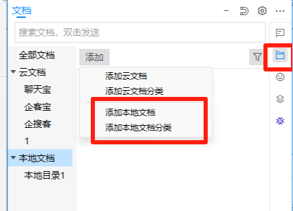 当您在聊天窗口中,点击输入窗口选择输入焦点后,您可以在文档列表中,双击文档名称,直接一键发送。